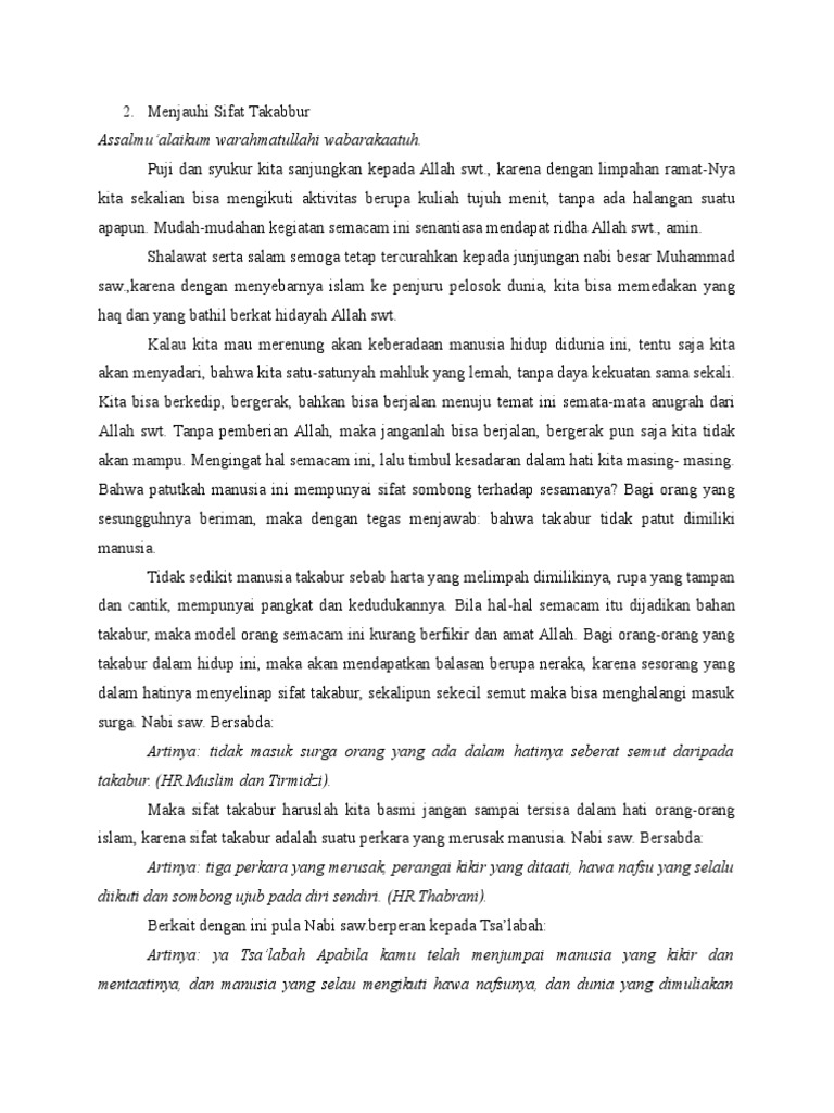 Pidato menjauhi sifat takabur. We would like to show you a description here but the site wont allow us. Bahasan kali ini tentang Bahaya Sifat Takabur yang juga merupakan contoh Judul Pidato Singkat yang dapat diuraikan pada kuliah tujuh menit Kultum. Pidato menjauhi sifat takabur Assalmualaikum warahmatullahi wabarakaatuh.